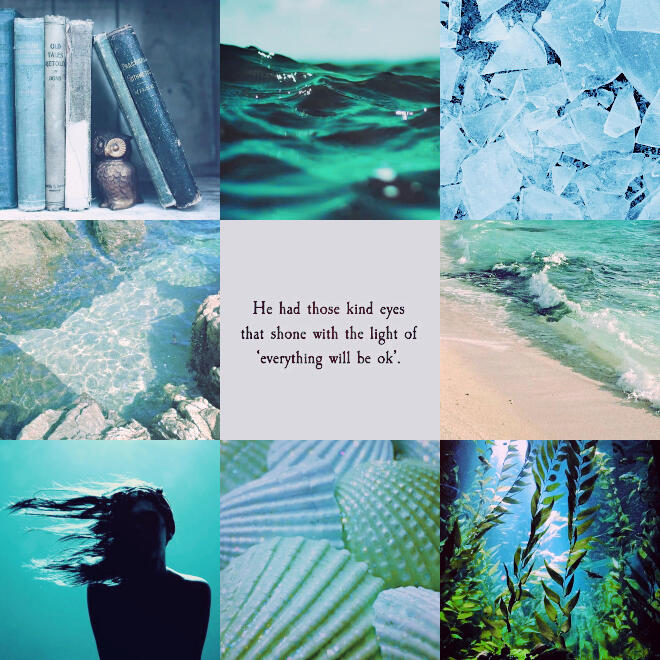 Reides has blue skin and long green hair that is always out loose and in an unkempt state. As he is a triton, he has prominent gills on either side of his neck and visible scales on his shoulders. He has finned ears and his hands and feet are webbed. His eyes are golden-green in colour and have black sclera. Standing at roughly 5ft, he is of average height for a triton and has a small build.Reides enjoys collecting random trinkets and occasionally incorporates them into his ensemble (making accessories out of them and the like). Currently, he wears a shark tooth choker and two necklaces - one made out of shells and, the other, a gold chain. He also wears shell earrings on both of his ears and has a star navel piercing. Clothes-wise, Reides has a tendency to get hot very quickly, as his body is more accustomed to a cold undersea environment. To make up for this, he tends to wear loose clothes that allow him to stay cool while he travels around the surface world. While Reides wears a few pieces of shell armor, they're mostly for cosmetic reasons rather than serving any protective function. After all, that's what Mage Armor's for!visual references for reides can be found over here.